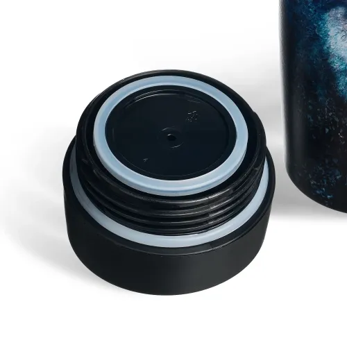 Двойные стенки термокружки изготовлены из нержавеющей стали, что способствует долговечности изделия. Вакуумная термоизоляция позволяет сохранять напитки горячими или холодными на протяжении нескольких часов. Медная прослойка между стенками увеличивает эффективность теплоизоляции. Герметичная крышка с кнопкой-стоппером облегчает открытие кружки одной рукой.