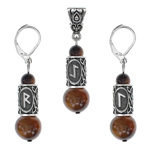 Сувенирный комплект из натурального камня тигровый глаз с руническими символами.
