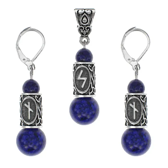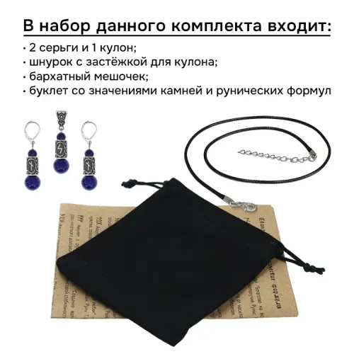 Рунический комплект Нейтрализация негатива включает серьги и кулон, выполненные из натурального камня Лазурит. Этот уникальный набор не только привлекает внимание своим дизайном, но и обладает глубоким символическим смыслом. Лазурит традиционно ценится за свою способность приносить удачу, успех и благополучие, а также способствует духовному развитию и искренним чувствам.