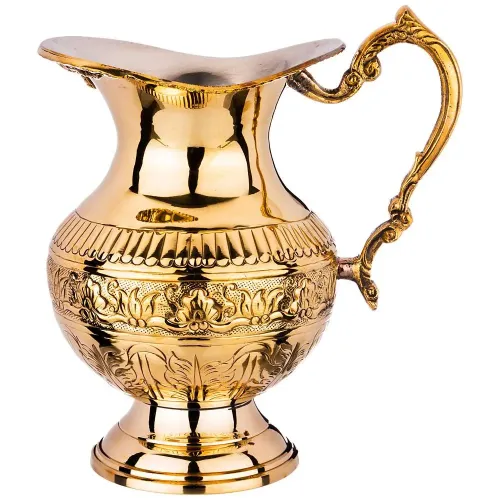 Кувшин изготовлен из латуни, материала, устойчивого к коррозии и механическим воздействиям. Удобная ручка обеспечивает комфортный захват и безопасное наливание. Высота изделия составляет 23 см.