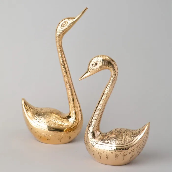 Фигурки выполнены из латуни, что обеспечивает долговечность и устойчивость к коррозии. Латунь также известна своей экологичностью и простотой ухода. Набор включает две утки разного размера — 23 см и 18 см, позволяя выбрать наиболее подходящий вариант для конкретного пространства.