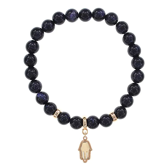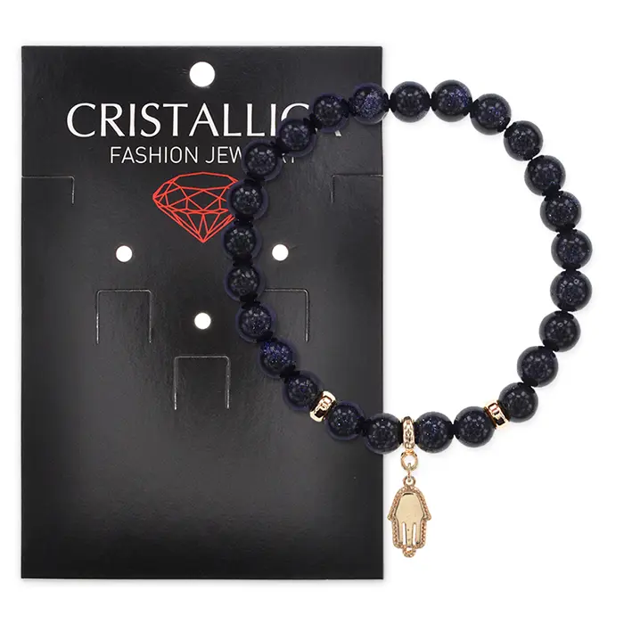 Браслет Ладонь (защита от сглаза и зла) синт.камень Синий авантюрин 8мм BS-CR-0782