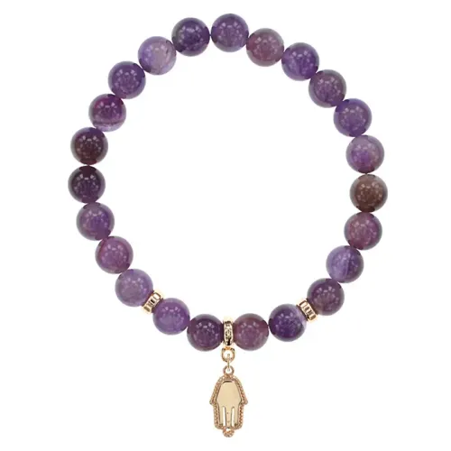 Стрейч-браслет из натурального аметиста с подвеской в виде ладони.