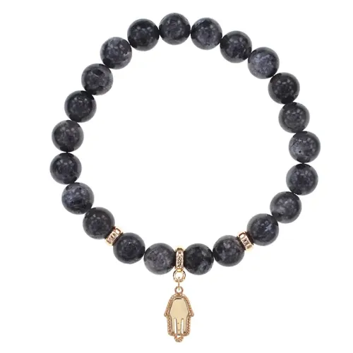 Браслет из натурального камня лабрадор с подвеской в виде ладони.