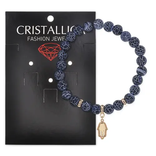 Браслет Ладонь (защита от сглаза и зла) нат.камень синий Африк. агат 8мм BS-CR-0807