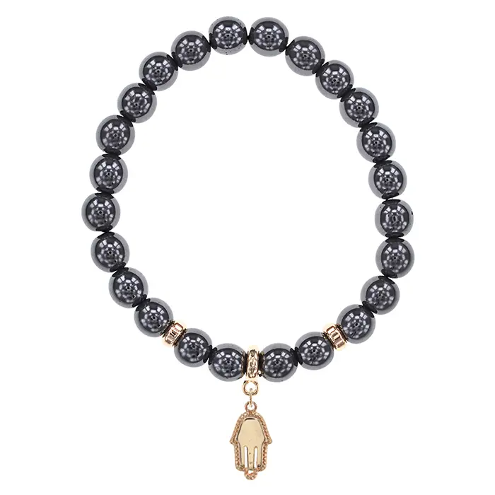 Браслет Ладонь (защита от сглаза и зла) синт.камень Гематит (не магнит.) 8мм BS-CR-0808