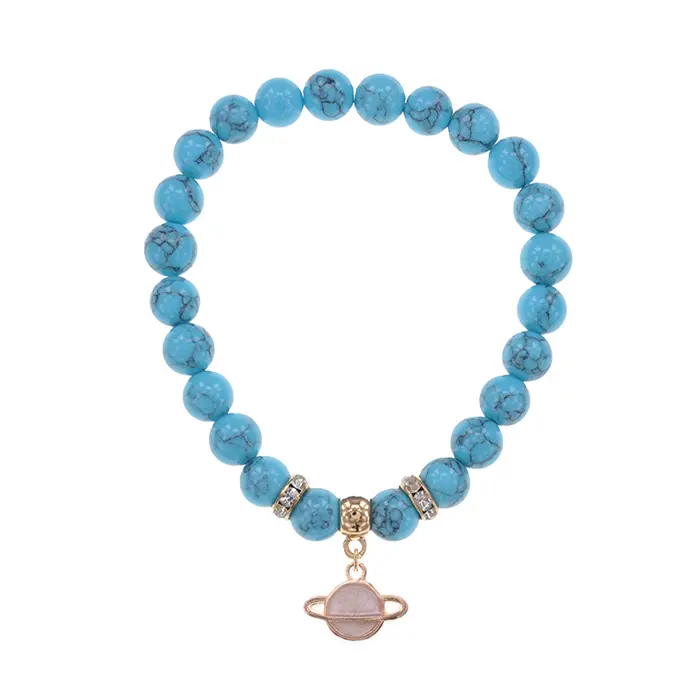 Браслет Сатурн (гармония и дисциплина) синт.камень Бирюза 8мм BS-CR-0275
