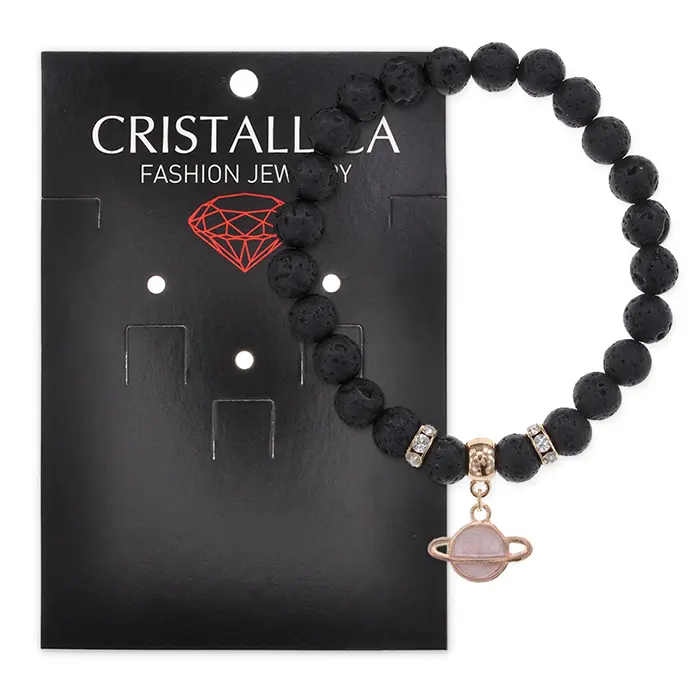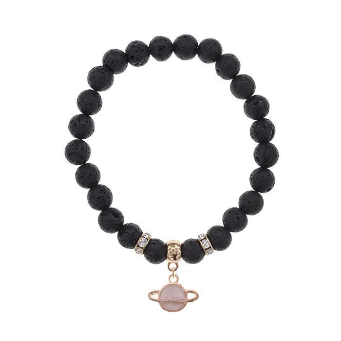 Стрейч-браслет из натурального камня лава с символикой планеты Сатурн.
