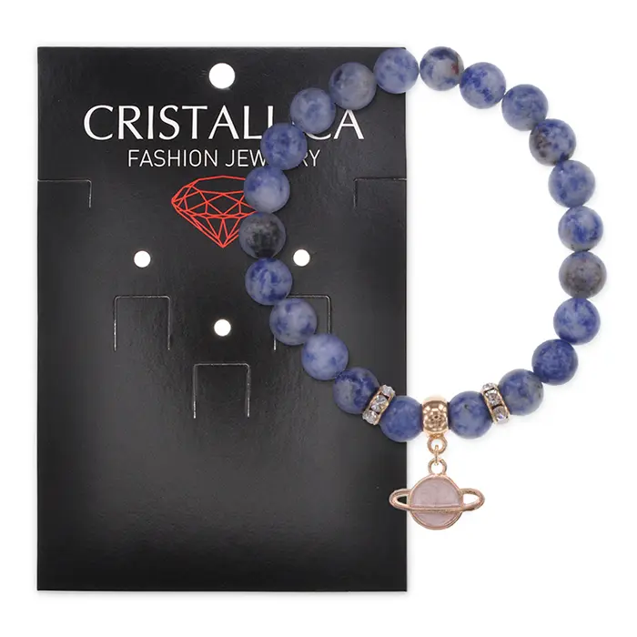 Стрейч-браслет из коллекции Cristallica, изготовленный из натурального камня содалит и украшенный стразами.