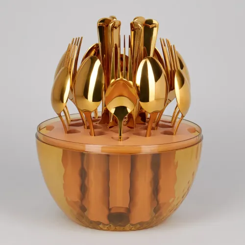 Набор столовых приборов на вращающейся подставке, 24 предмета сталь 18/10, пвд покрытие - Agness