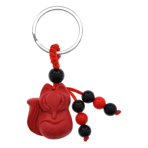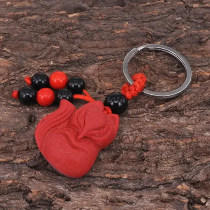 Брелок для ключей из пластика в виде фигурки Кицунэ, имитирующего киноварь.
