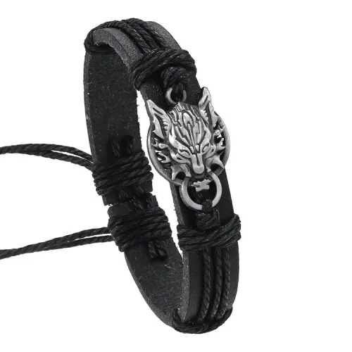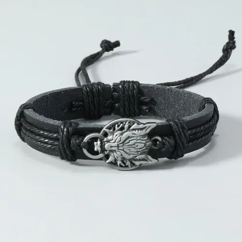 Кожаный браслет с декоративным элементом в виде дракона.