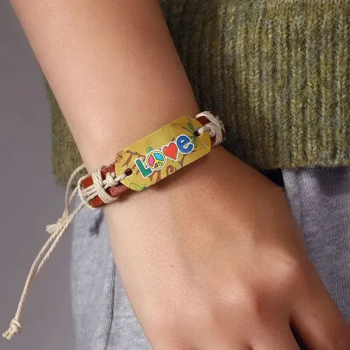 Кожаный браслет Love, 1 см, цвет коричневый BS847