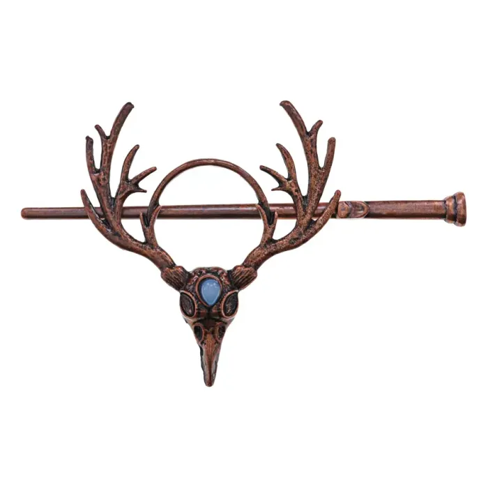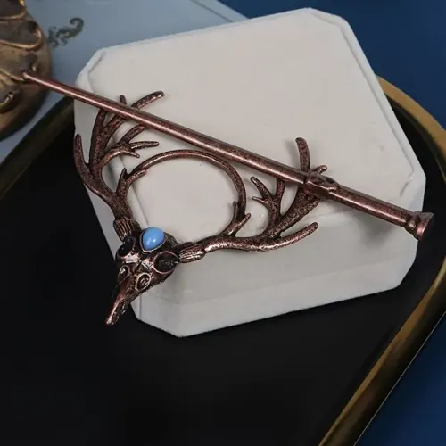 Заколка для волос в технике канзаши из металла с покрытием под медь и эмалью, со стеклянной вставкой.