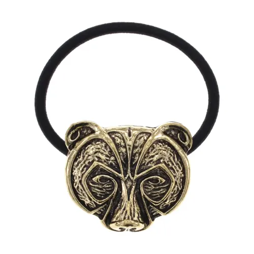 Резинка для волос с декоративным элементом в виде волка. Изготовлена из металла с покрытием под золото и текстиля.