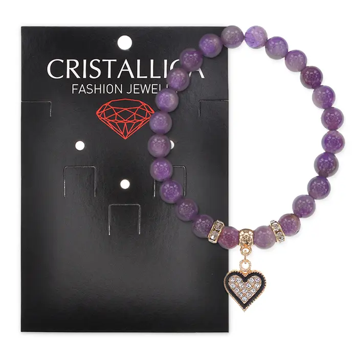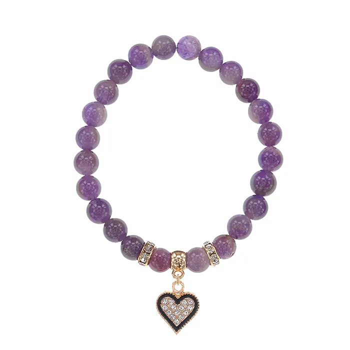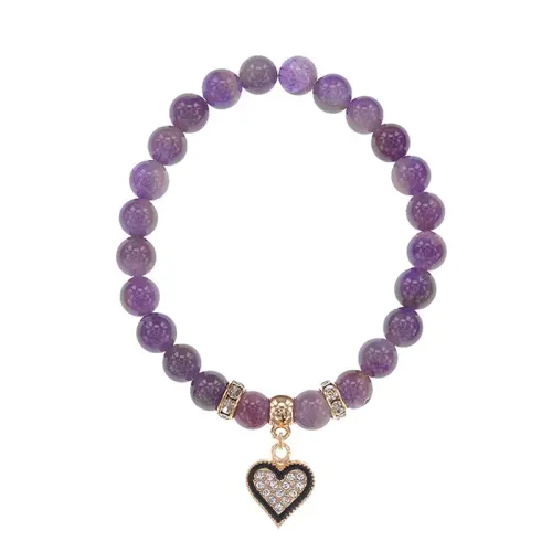 Браслет Сердце (Любовь и Семейное Счастье) нат.камень Аметист 8мм BS-CR-0363
