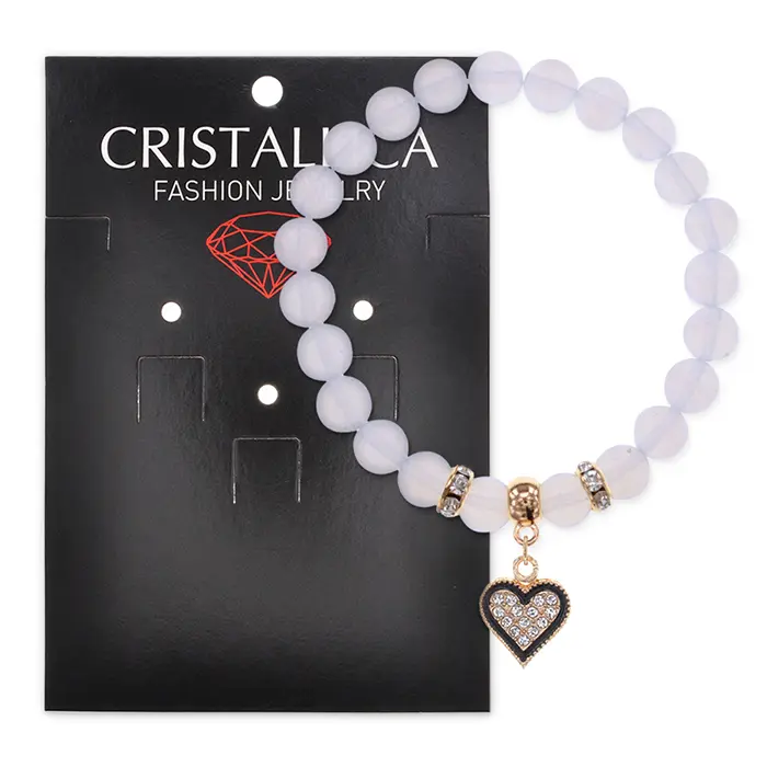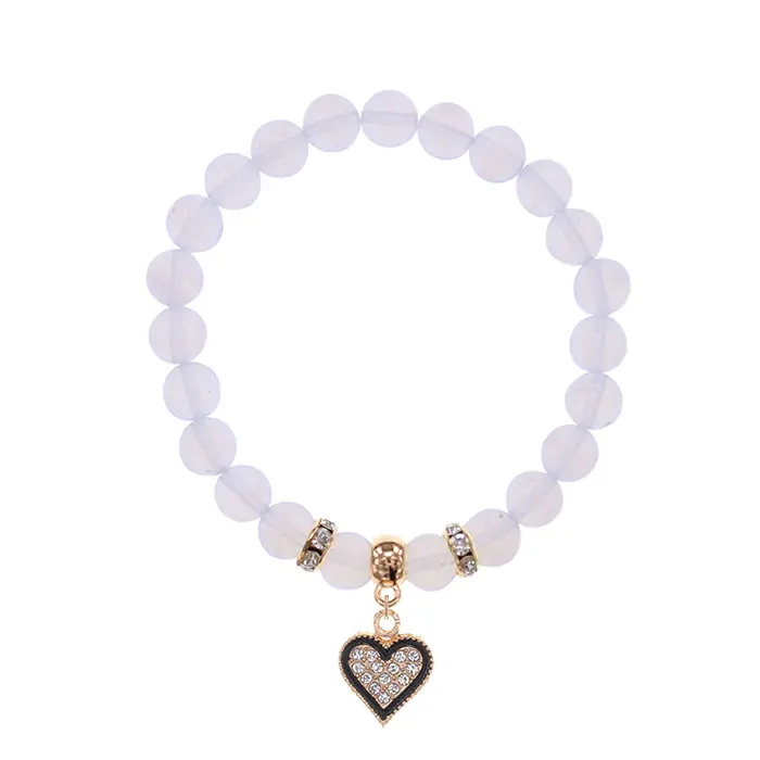 Стрейч-браслет из синтетического лунного камня с подвеской в виде сердца.