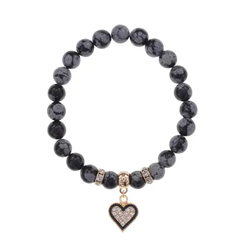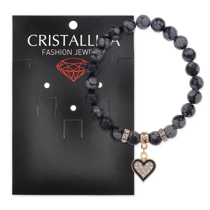 Браслет Сердце (любовь и семейное счастье) нат.камень Снежный обсидиан 8мм BS-CR-0374