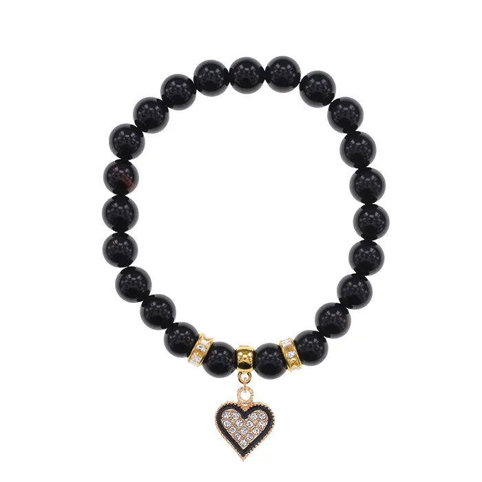 Браслет Сердце (Любовь и Семейное Счастье) нат.камень Черный агат 8мм BS-CR-0383
