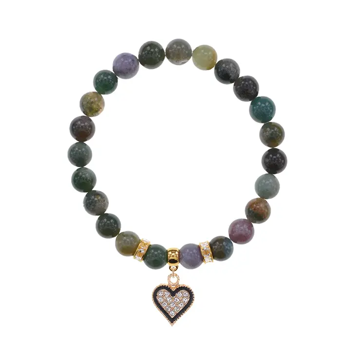 Браслет из натуральной яшмы с подвеской в виде сердца. Стержневая конструкция.