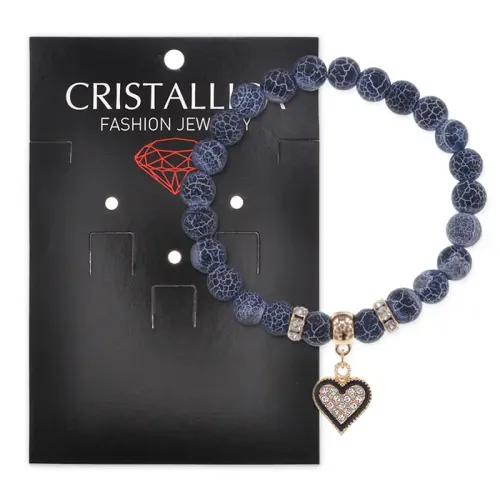 Браслет Сердце (любовь и семейное счастье) нат.камень синий Африк. агат 8мм BS-CR-0387