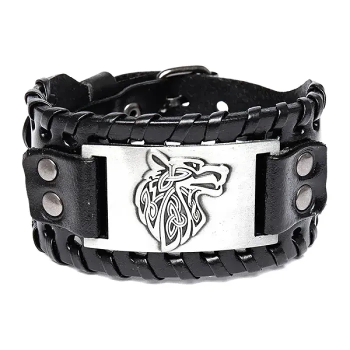 Кожаный браслет с металлической фурнитурой. Модель «Фенрир».