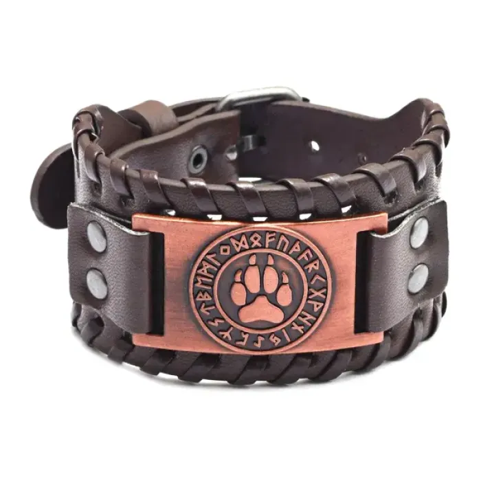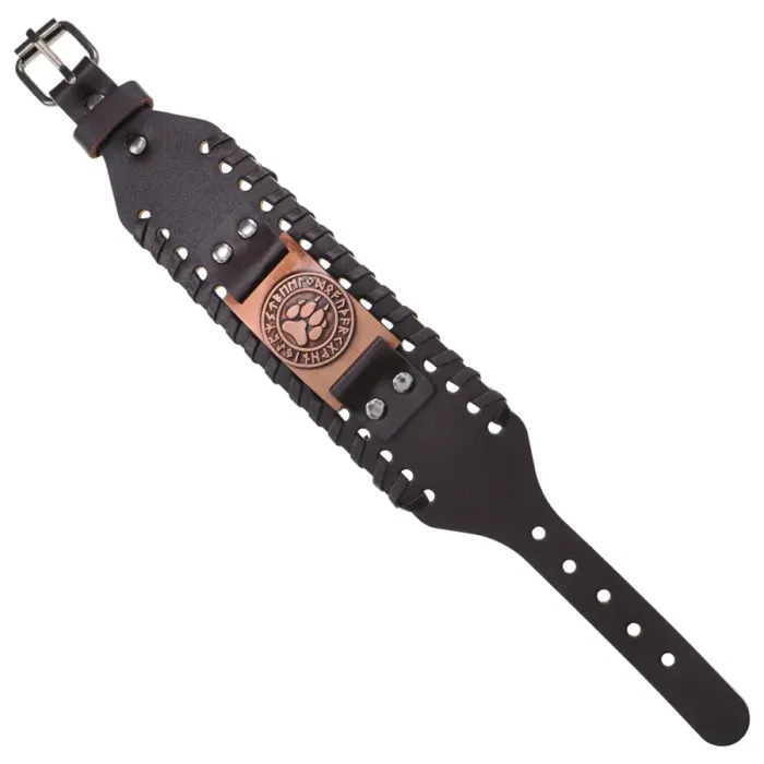 Кожаный браслет с металлическим элементом в виде волчьей лапы.