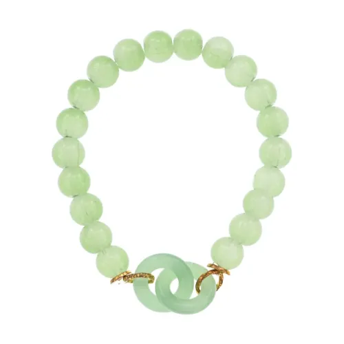 Стрейч-браслет с бусинами из синтетического нефрита и металлическими элементами.