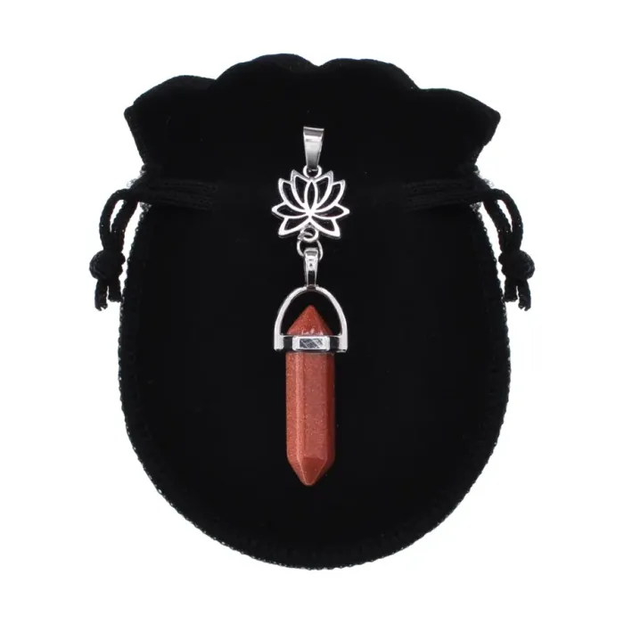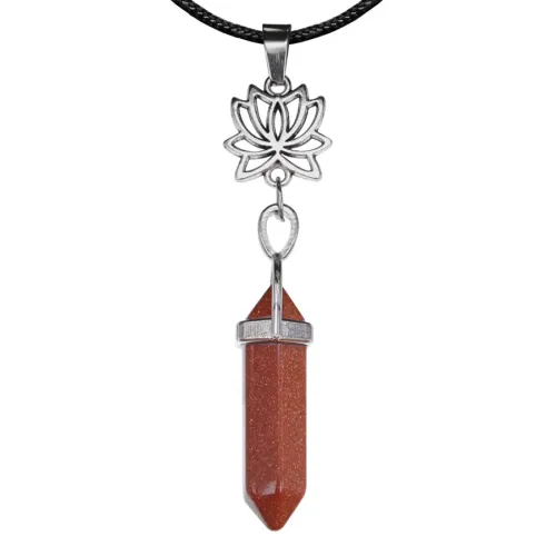 Амулет-маятник в виде лотоса, изготовленный из синтетического камня коричневый авантюрин и бижутерного сплава.