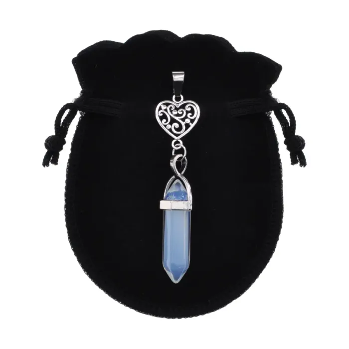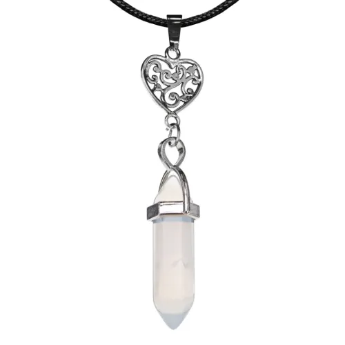 Амулет-маятник в форме сердца из синтетического камня опалит (лунный камень), собранный вручную.