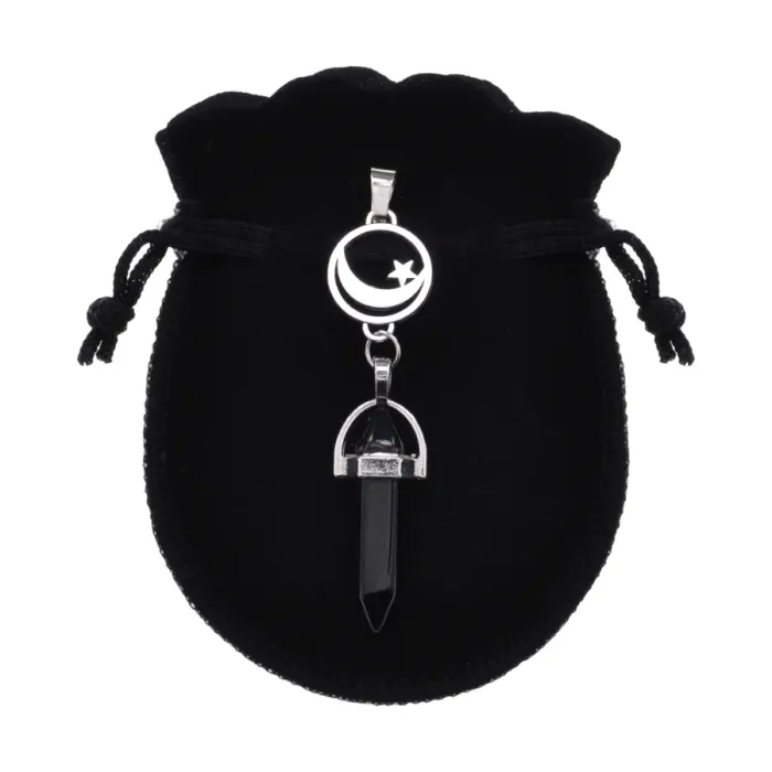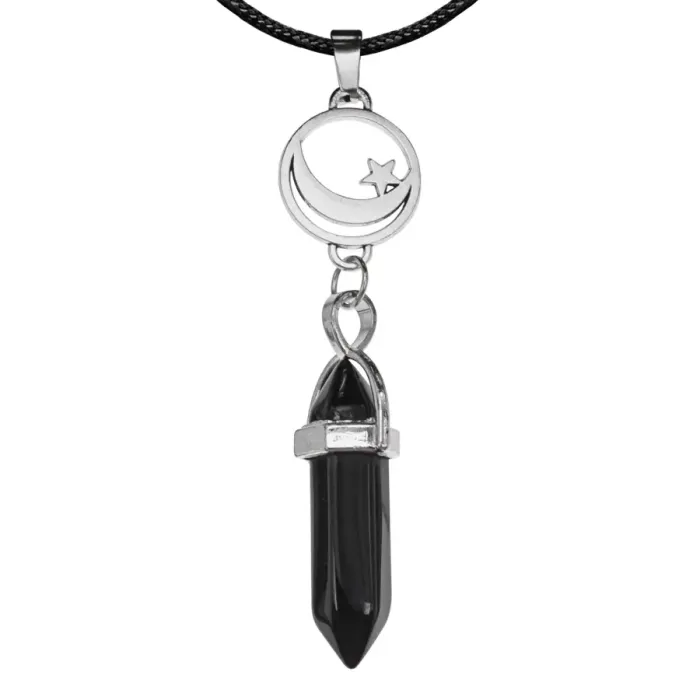 Амулет-маятник Полумесяц и звезда, нат.камень Черный агат MKA-5011