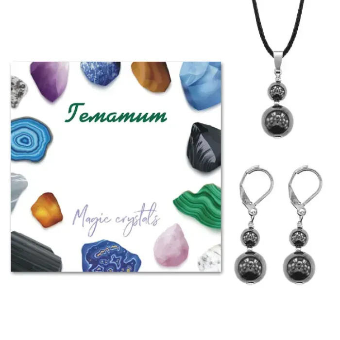 Комплект серьги и кулон Гематит (не магнит.) KOM01-25