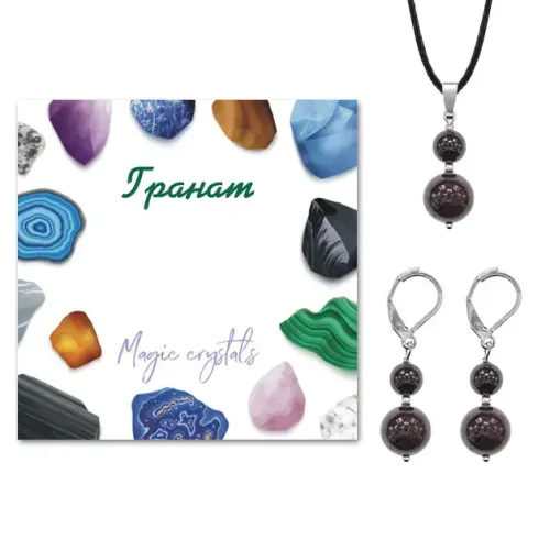 Комплект серьги и кулон Гранат KOM01-26