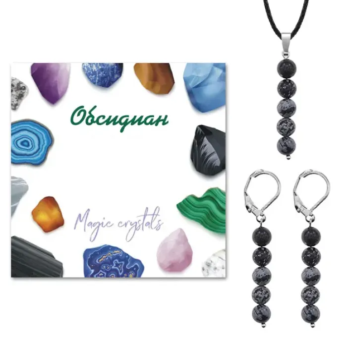 Комплект серьги и кулон Снежный обсидиан KOM02-27