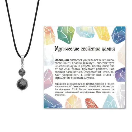 Кулон ручной работы из натурального камня снежный обсидиан.