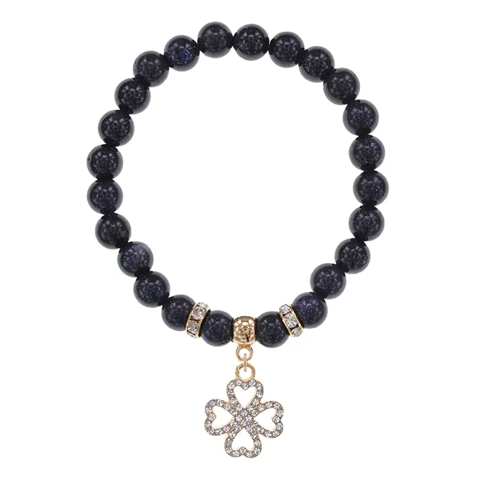 Браслет Клевер (удача и везение) синт.камень Синий авантюрин 8мм BS-CR-0302