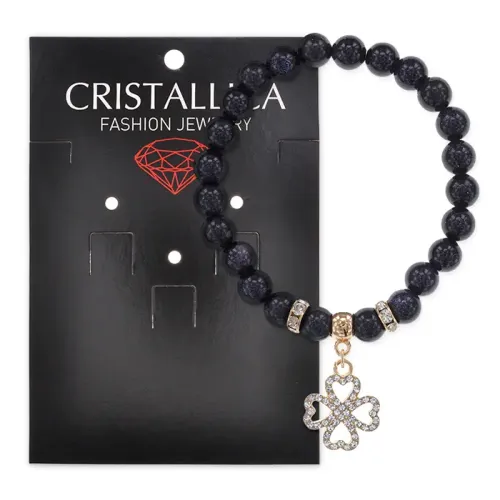 Браслет из синтетического камня синий авантюрин с дизайном «Клевер» и фурнитурой цвета светлого золота.