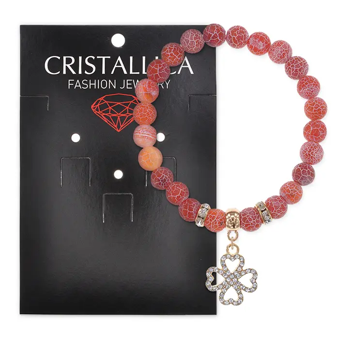 Браслет Клевер (удача и везение) нат.камень Африканский агат 8мм BS-CR-0304