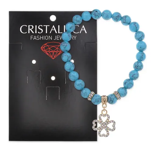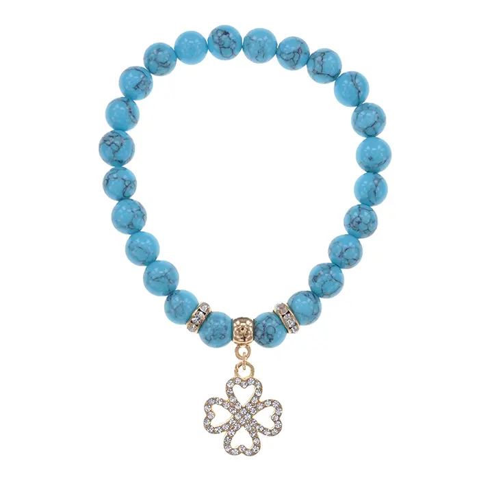 Стрейч-браслет из синтетического камня бирюзы с подвеской в виде клевера.
