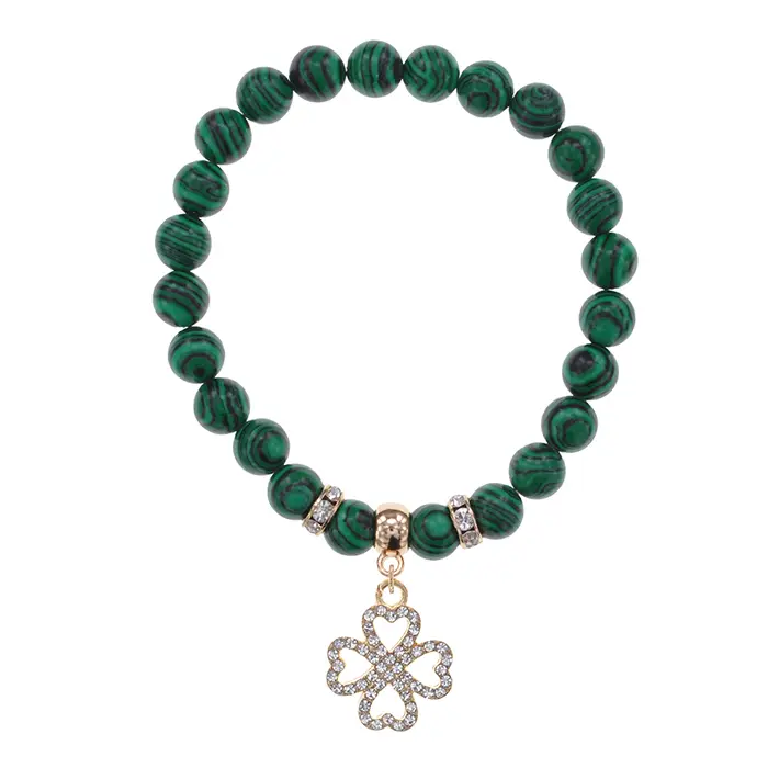 Браслет Клевер (удача и везение) синт.камень Малахит 8мм BS-CR-0312