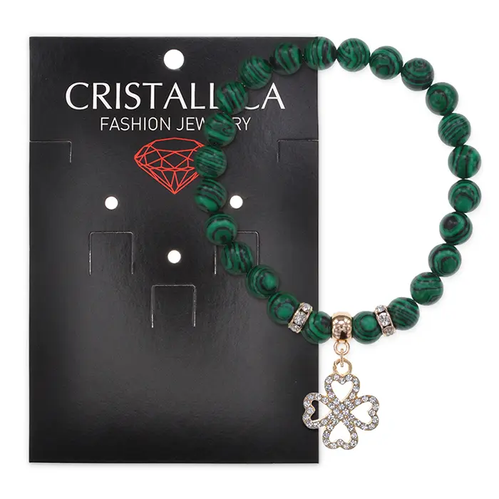 Стрейч-браслет коллекции Cristallica, украшенный стразами. Изготовлен из синтетического камня малахит.