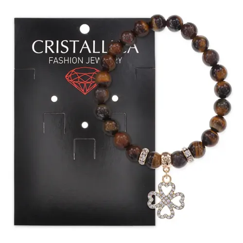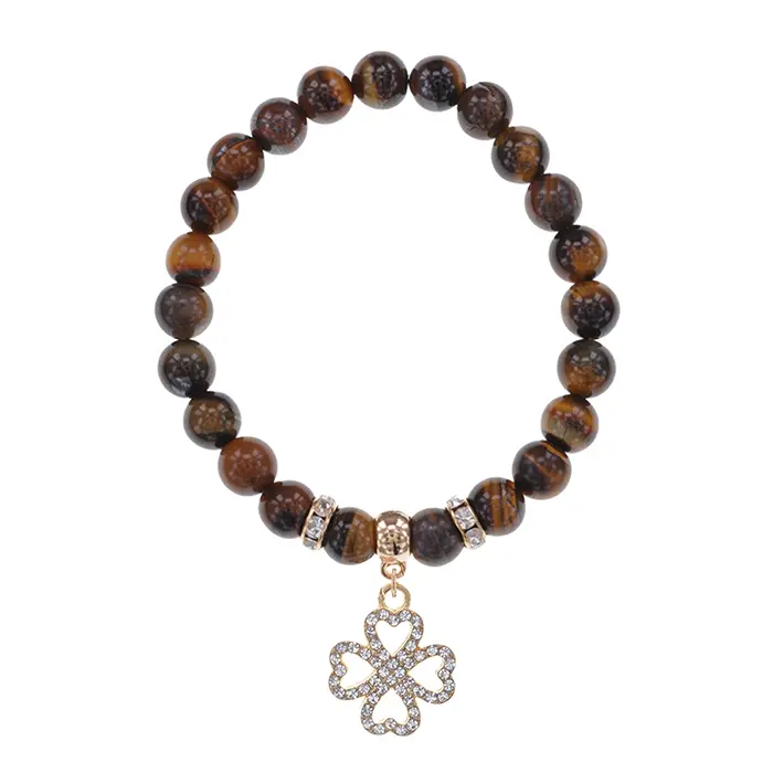 Браслет Клевер (удача и везение) нат.камень Тигровый глаз 8мм BS-CR-0319