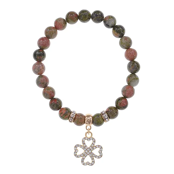 Браслет Клевер (удача и везение) нат.камень Унакит 8мм BS-CR-0320