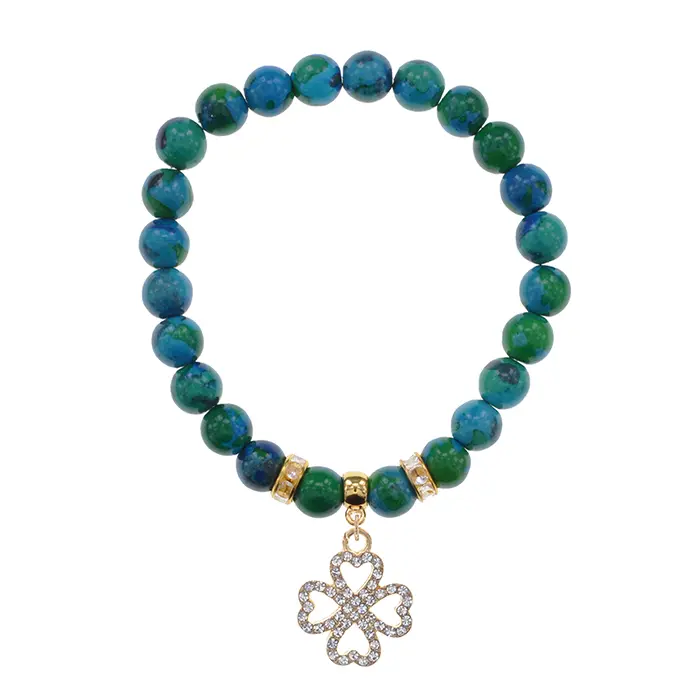 Браслет Клевер (удача и везение) синт.камень Хризоколла 8мм BS-CR-0321