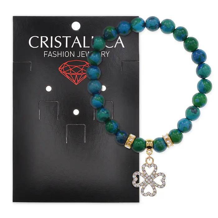 Стрейч-браслет коллекции Cristallica с бусинами из синтетического камня хризоколла и стразами.