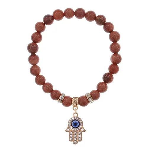 Браслет Хамса (защита от сглаза и зла) синт.камень Корич. авантюрин 8мм BS-CR-0331