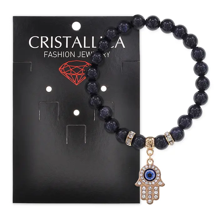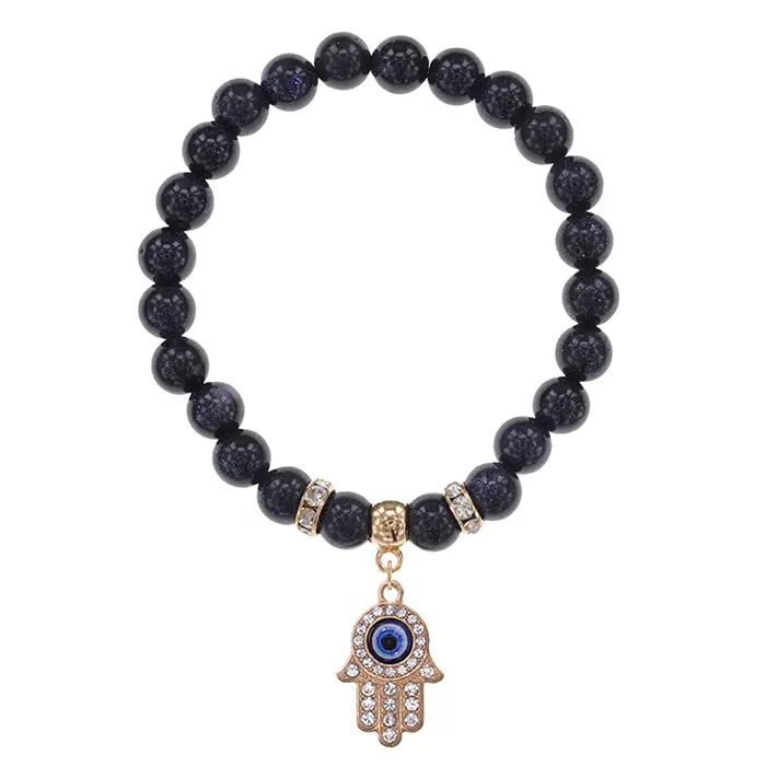 Браслет Хамса (защита от сглаза и зла) синт.камень Синий авантюрин 8мм BS-CR-0332