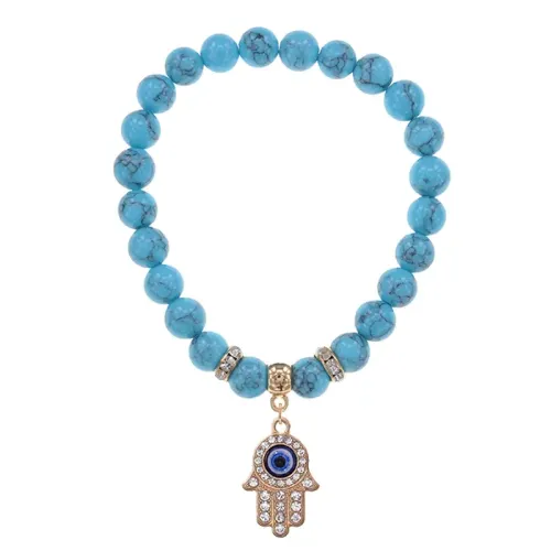 Браслет Хамса (защита от сглаза и зла) синт.камень Бирюза 8мм BS-CR-0335