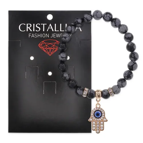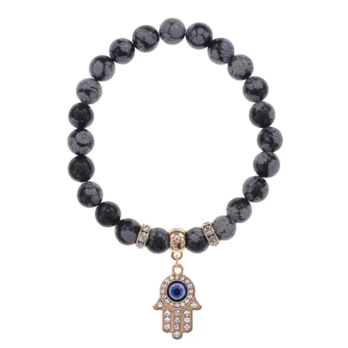 Браслет Хамса (защита от сглаза и зла) нат.камень Снежный обсидиан 8мм BS-CR-0344