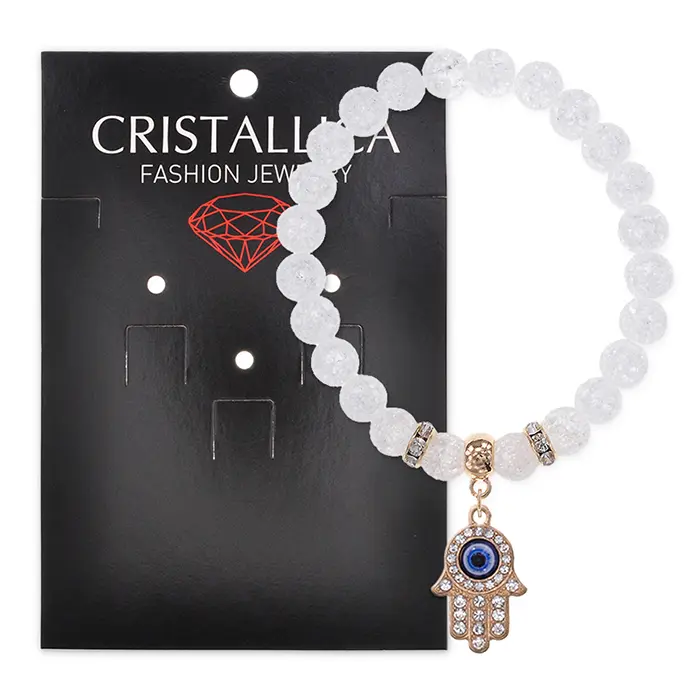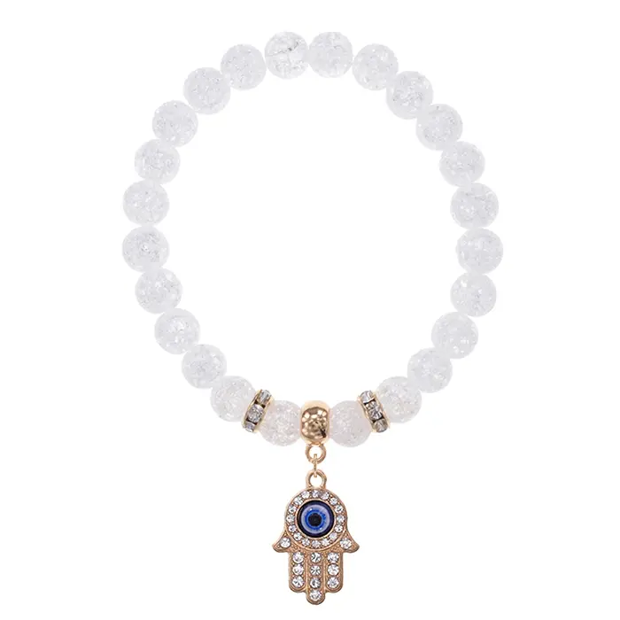 Браслет Хамса (защита от сглаза и зла) синт.камень Сахарный кварц 8мм BS-CR-0346
